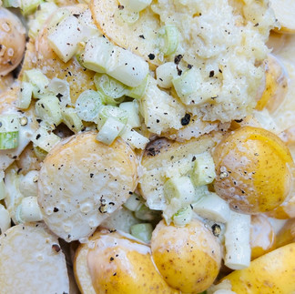 This is inspired, even if we do say so ourselves! We have made and devoured potato foils for donkeys on our camping trips, but we have never produced potato foils to this level before. I'm not sure when inspiration hit, but my word I am glad it did! The cream and garlic elevate this standard staple to heroic proportions. Delicious straight from the foil, but if you can resist temptation and let the flames do their work, they are an absolute classic with bangers and our Homemade Red Cabbage and Apple Slaw.