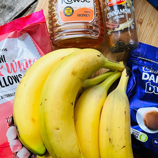 Cut a slit through one side of each banana, taking care not to pierce both sides, squeeze in a drizzle of honey, sprinkle of cinnamon, poke in a few chocolate buttons and squish in some mini marshmallows. Wrap in a piece of foil and place into the embers for about 5-10 minutes. Devour with a spoon from the foil!