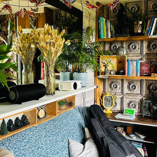 Super warm shower, fluffy towels and an indoor toilet for nighttime wees - with an outdoor compost loo for the daytime - you are so secluded that there is no need to shut the door - what a view for a poo (sorry, TMI!!). The kitchen boasts a gas cooker, stove, fridge freezer, Alexa, Moroccan lighting, sofa and wood burner. Bring your laptop as there is also a projector and roll-down screen for cosying up for a movie night once you've finished your evening meal and fire.